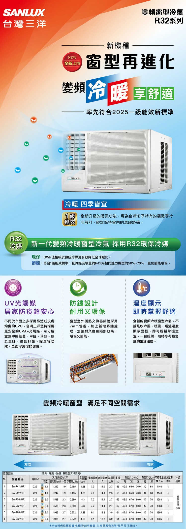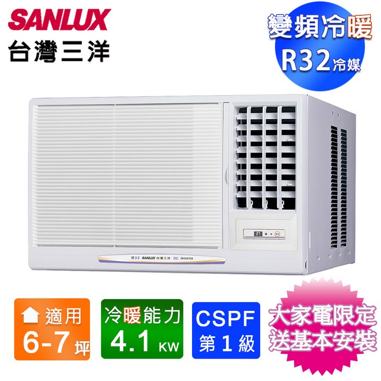 SANLUX台灣三洋6-7坪一級變頻冷暖右吹窗型冷氣 SA-R41VHR~含基本安裝+舊機回收