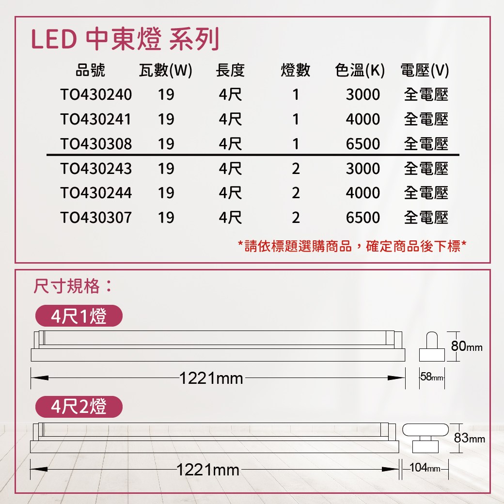 TOA東亞 LTS42441XAA LED 19W 4尺 2燈 6500K 晝白光 全電壓 中東燈