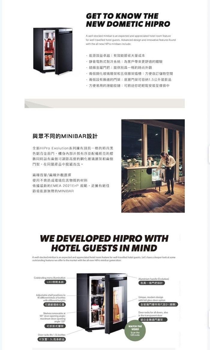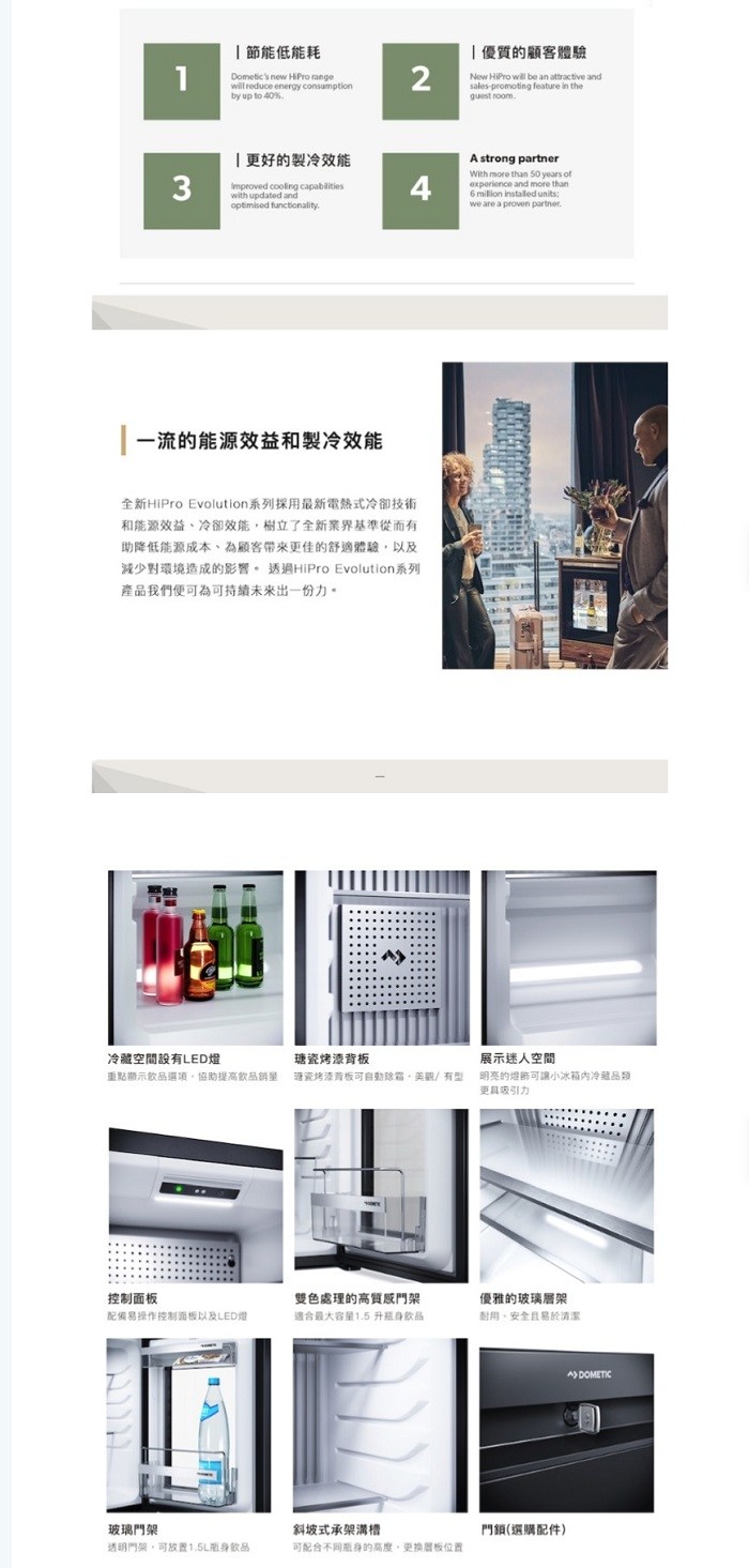 限期贈真空儲物機13L Dometic 全新Hipro Evolution系列Minibar玻璃門款 N40G 40公升 無聲小冰箱