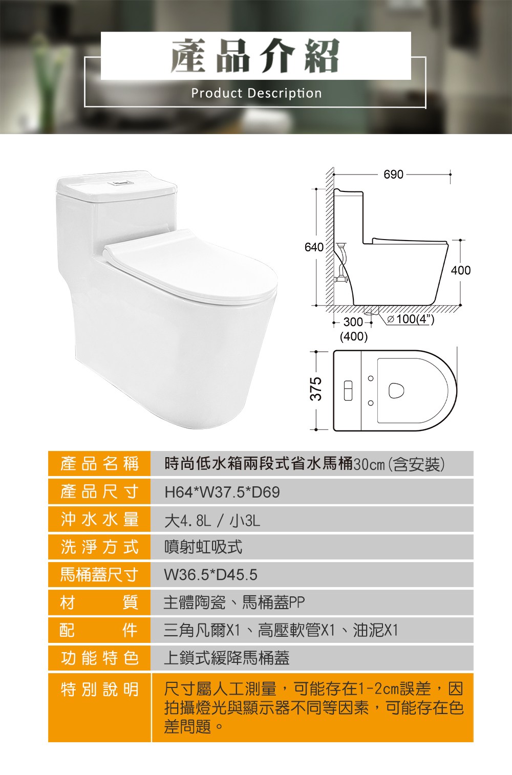 時尚低水箱兩段式省水馬桶 30cm