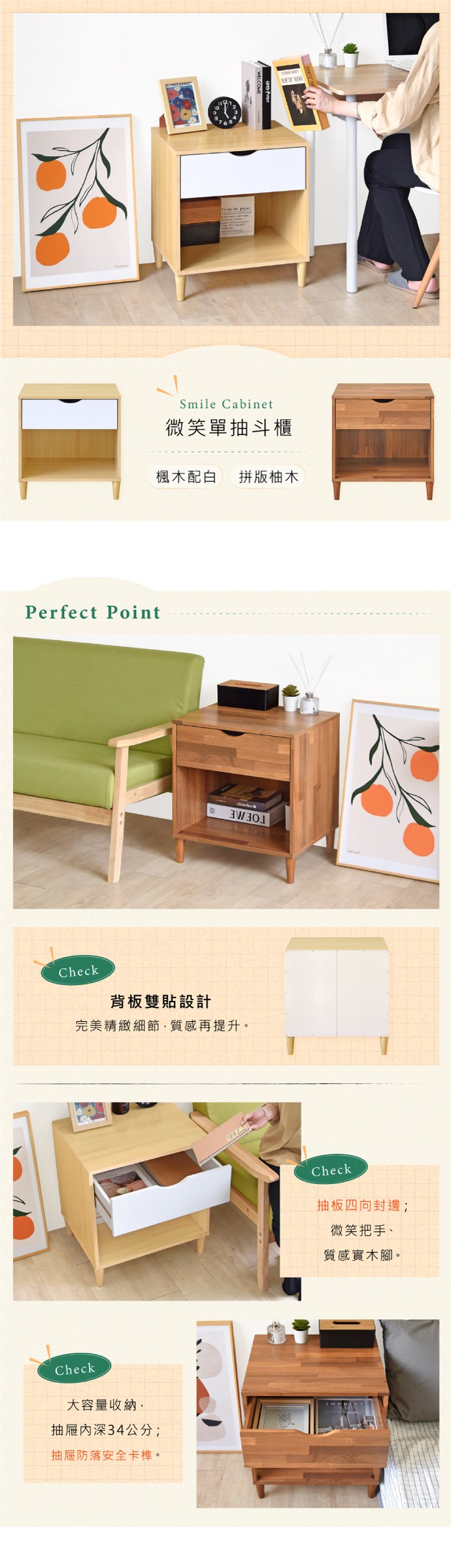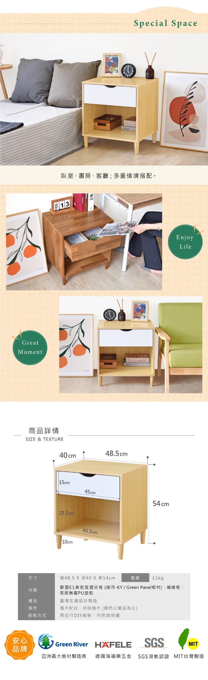 HomeMax 卡琳床頭收納櫃 台灣製造 白色 + 原木色 1個