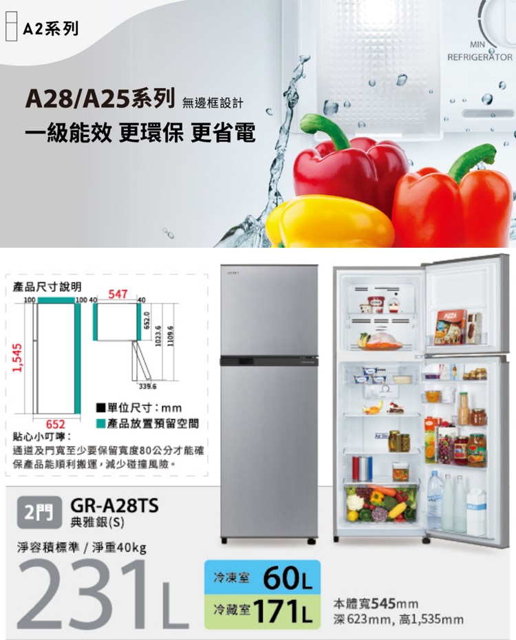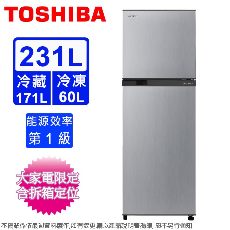 TOSHIBA東芝231公升雙門變頻電冰箱 GR-A28TS(S)~含拆箱定位+舊機回收