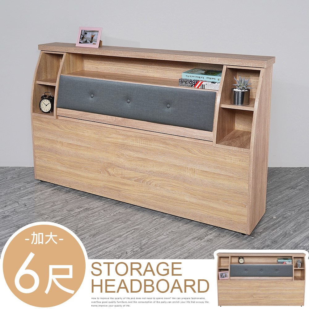 Homelike 喜家居雙人加大6尺收納床頭箱(梧桐色)(2284)