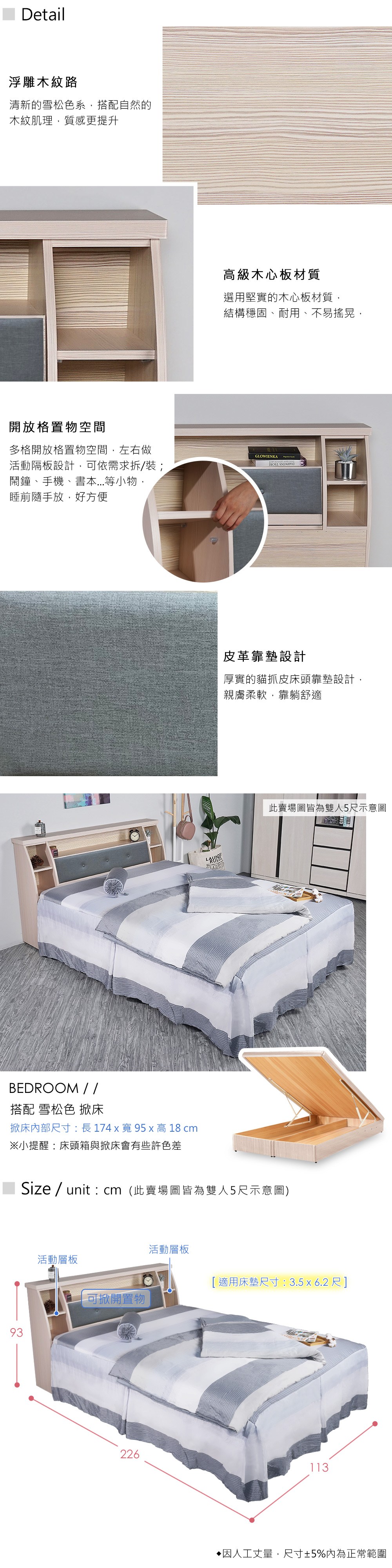 hoi!源氏木語冰河橡木原木色雙人加大180x190懸浮床架 Y00B150