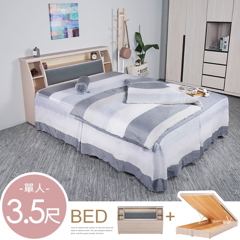 ★經濟促銷★【IHouse】經濟型房間三件組(床頭+床底+獨立筒)-單大3.5尺