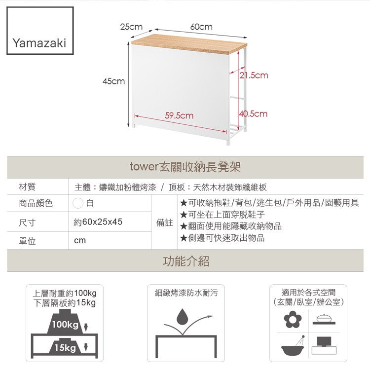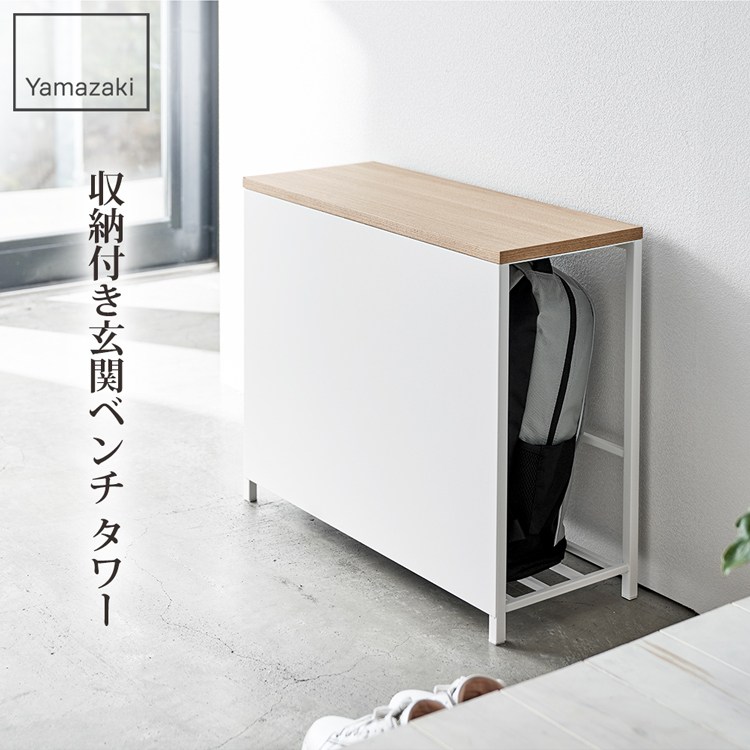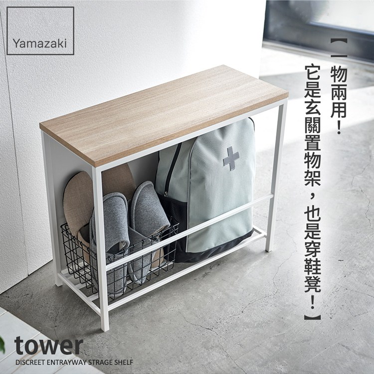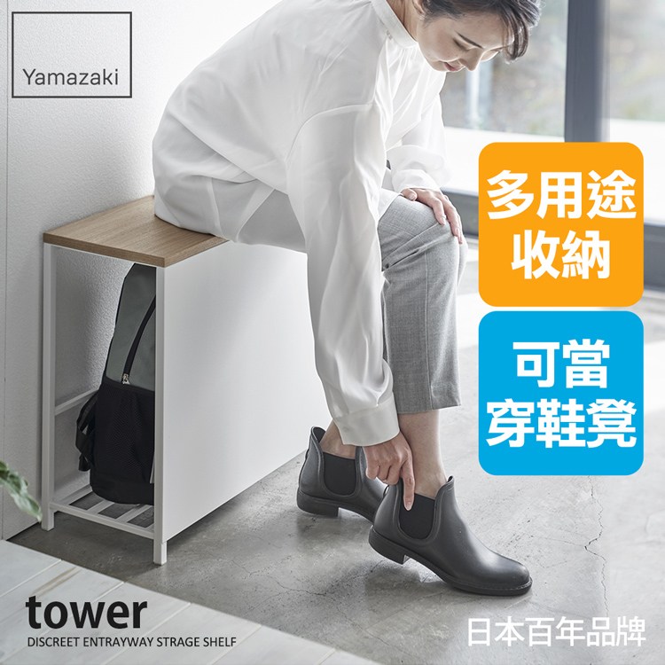 日本【YAMAZAKI】tower玄關收納長凳架(白)