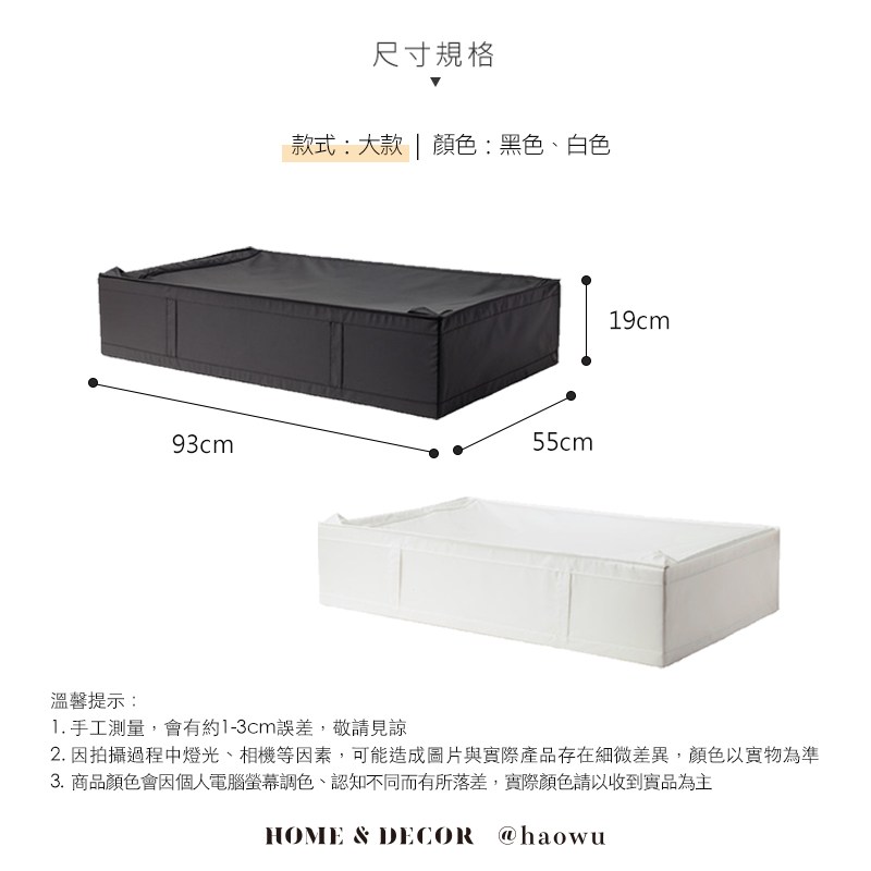 【好物良品】大款_牛津布床底提把衣物被子收納整理箱 床下拉鍊置物箱-黑色