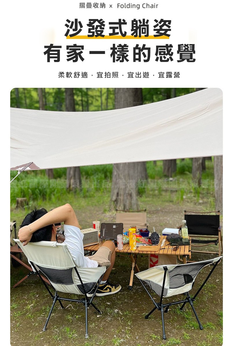 【灰熊厲害】舒適透氣戶外露營摺疊月亮椅 露營椅 戶外椅 野餐椅優雅白