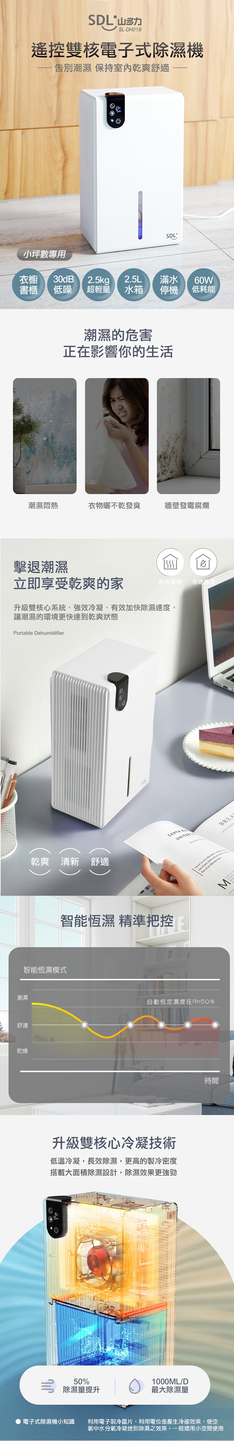 SDL山多力 遙控雙核電子式除濕機 SL-DH018