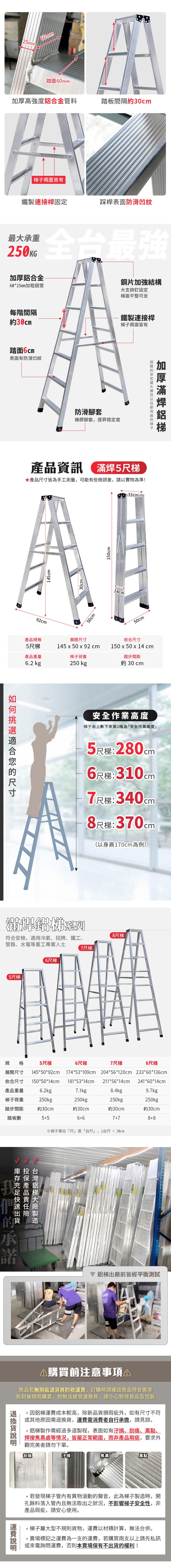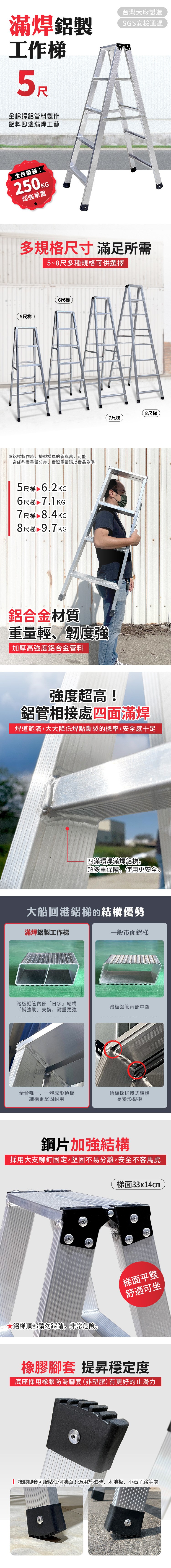 大船回港 全加厚鋁製馬椅活動梯-5尺
