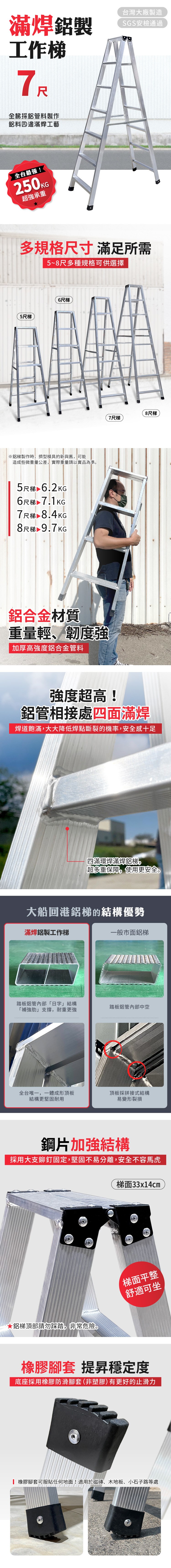 大船回港 加厚滿焊鋁製工作梯-5尺