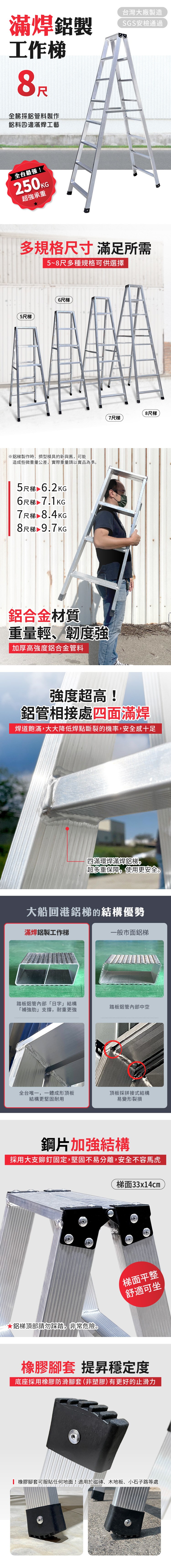 【大船回港】滿焊二關節鋁梯 6尺