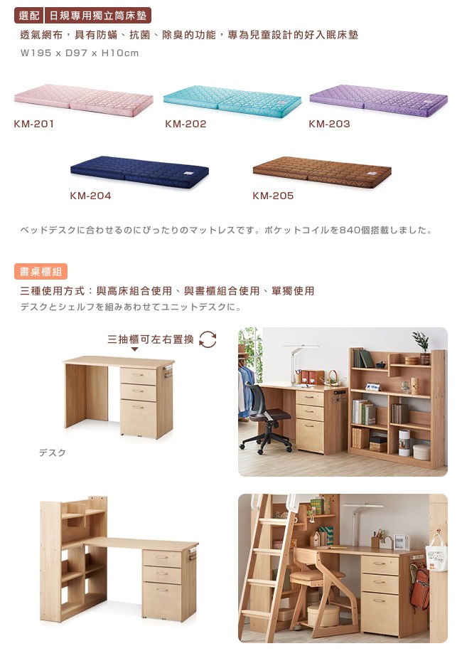 建議選配【KOIZUMI】原廠日規床墊、學童椅。