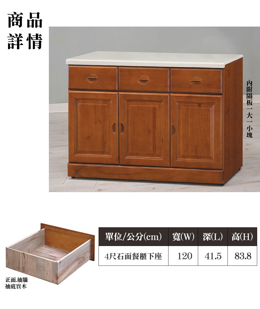 商品說明:美背、側板、隔板木心板、保麗漆、尼龍滑軌