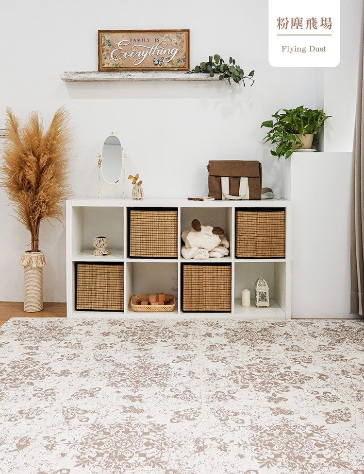 Playzu 台灣製環保無毒歐美設計波斯花防水巧拼地墊62cm(6片組)粉塵飛場(咖啡)