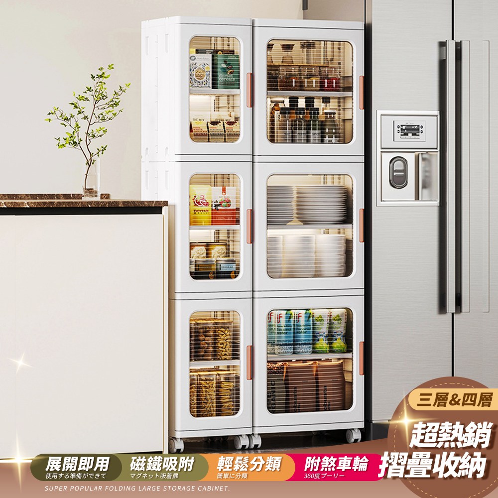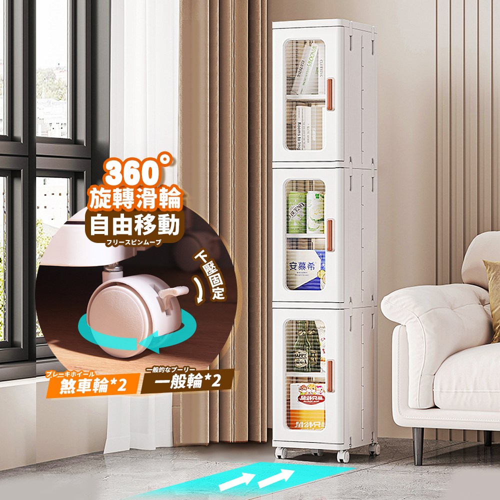 【Mr.box】新式摺疊單開門包包收納櫃-附輪 3層透明門