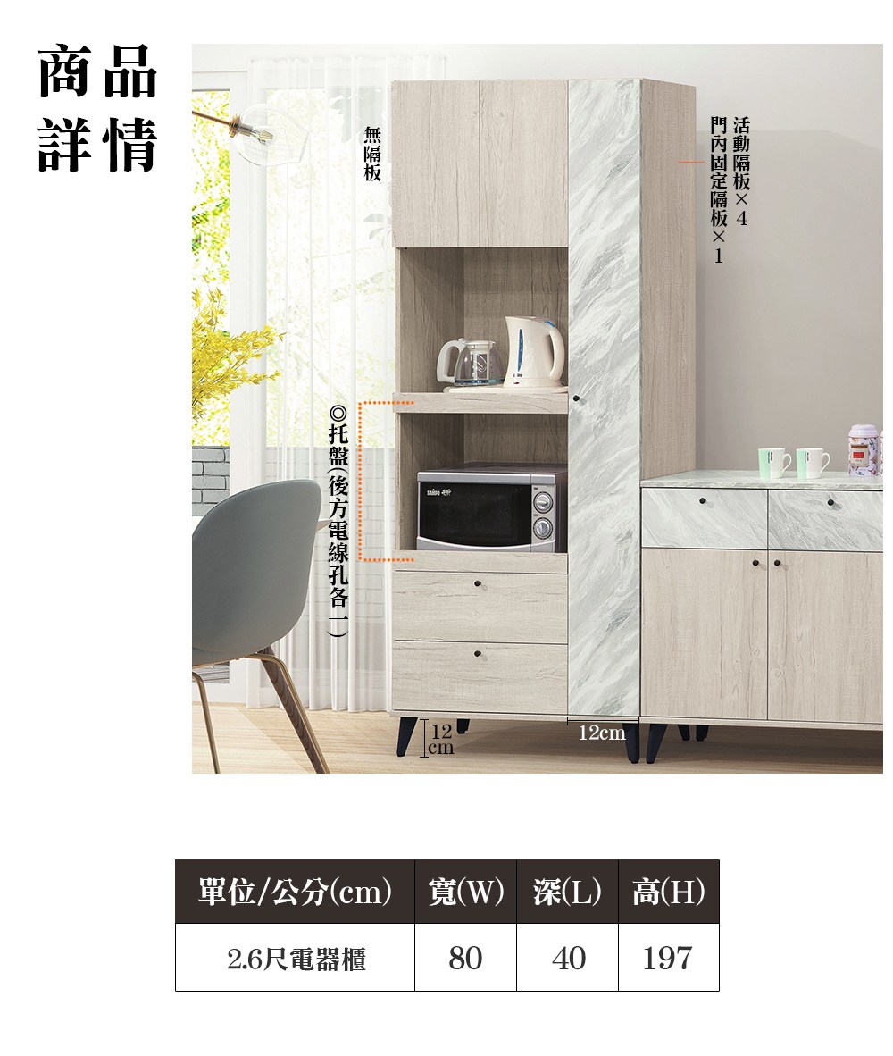 Ulmus 4尺仿石面多格收納餐櫃組 完美主義【O0009】
