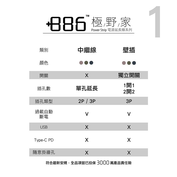 +886 極野家 1開1壁插 防雷擊 V2 迷霧灰
