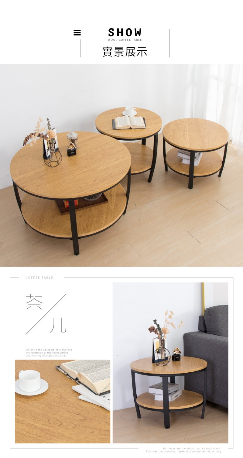 【RICHOME】克羅斯雙層圓邊桌原木色
