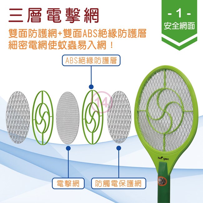 *按住電源可放電,放開後網片自動放電,絕不會殘留餘電,安全不觸電