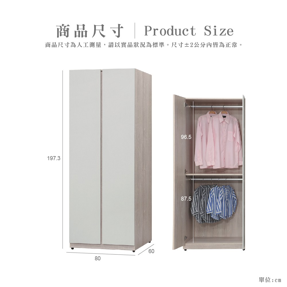 本木-白皙 2.6尺雙吊衣櫥2.6尺