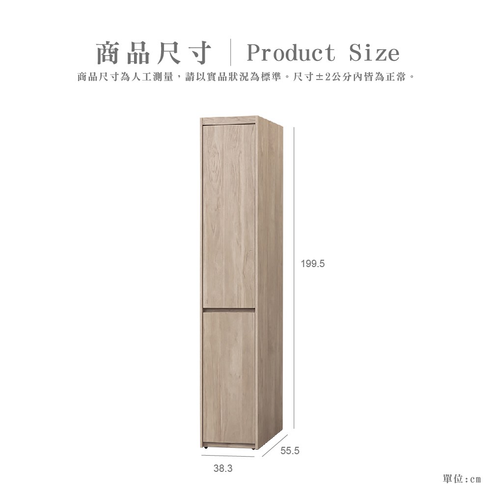 文創集 愛可1.3尺二門三抽加高衣櫃組合-40x59x250cm免組