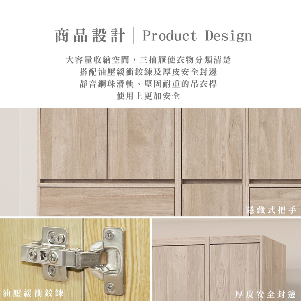 IDEA MIT凡賽4X6尺木質收納抽屜滑門衣櫃/衣櫥(3色任選)