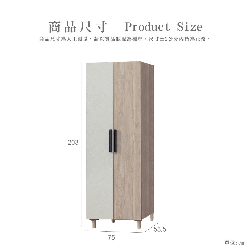 AS雅司-松樂2.5尺雙吊衣櫃-76x57x202cm
