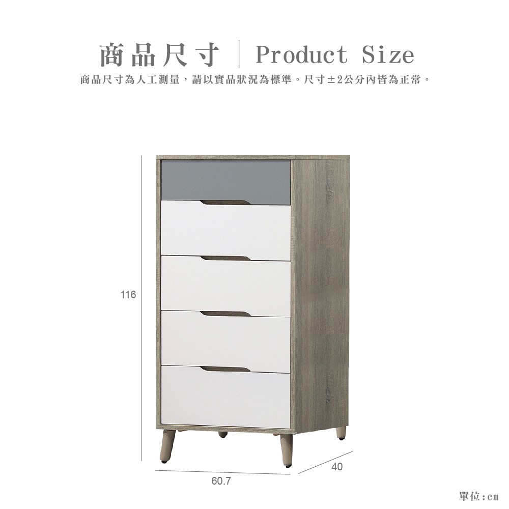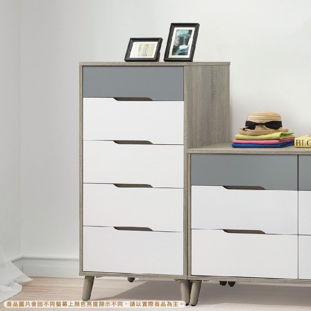 【文創集】艾普雙色2尺五抽斗櫃-60.7x40x116cm免組