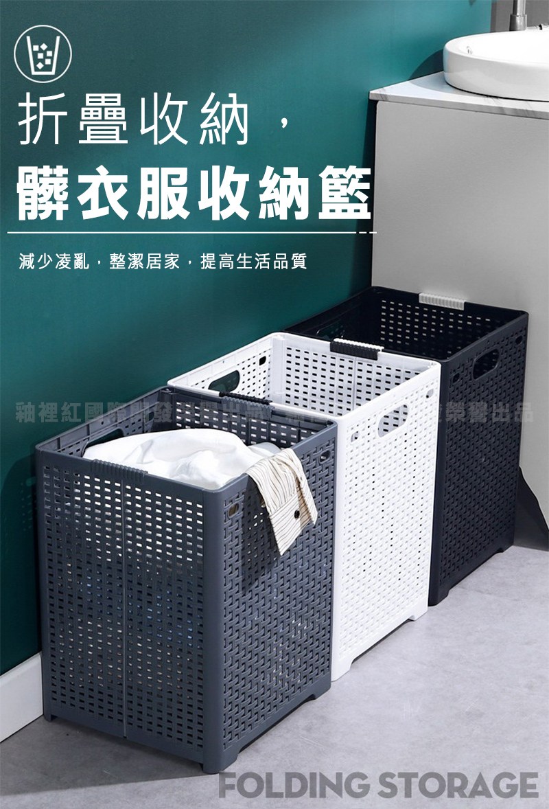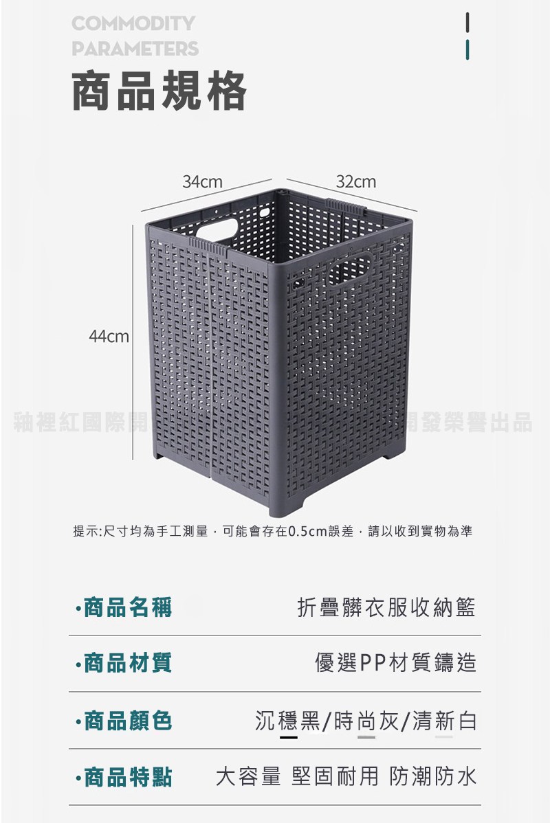 日式加大折疊髒衣收納籃 新料PP 44 x 34 x 32cm 黑色
