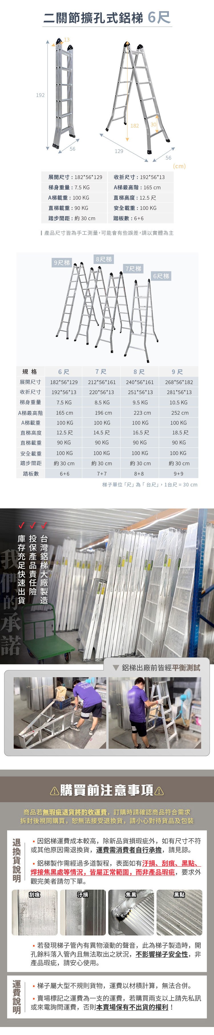 【大船回港】滿焊二關節鋁梯 6尺