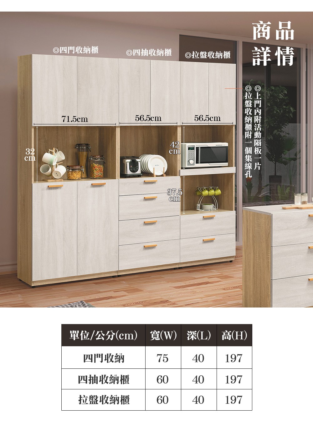 直人木業-北歐白楓木標準衣櫃270公分(三抽75公分+配色雙門75公分+全白雙門75公分+開放櫃45公分)