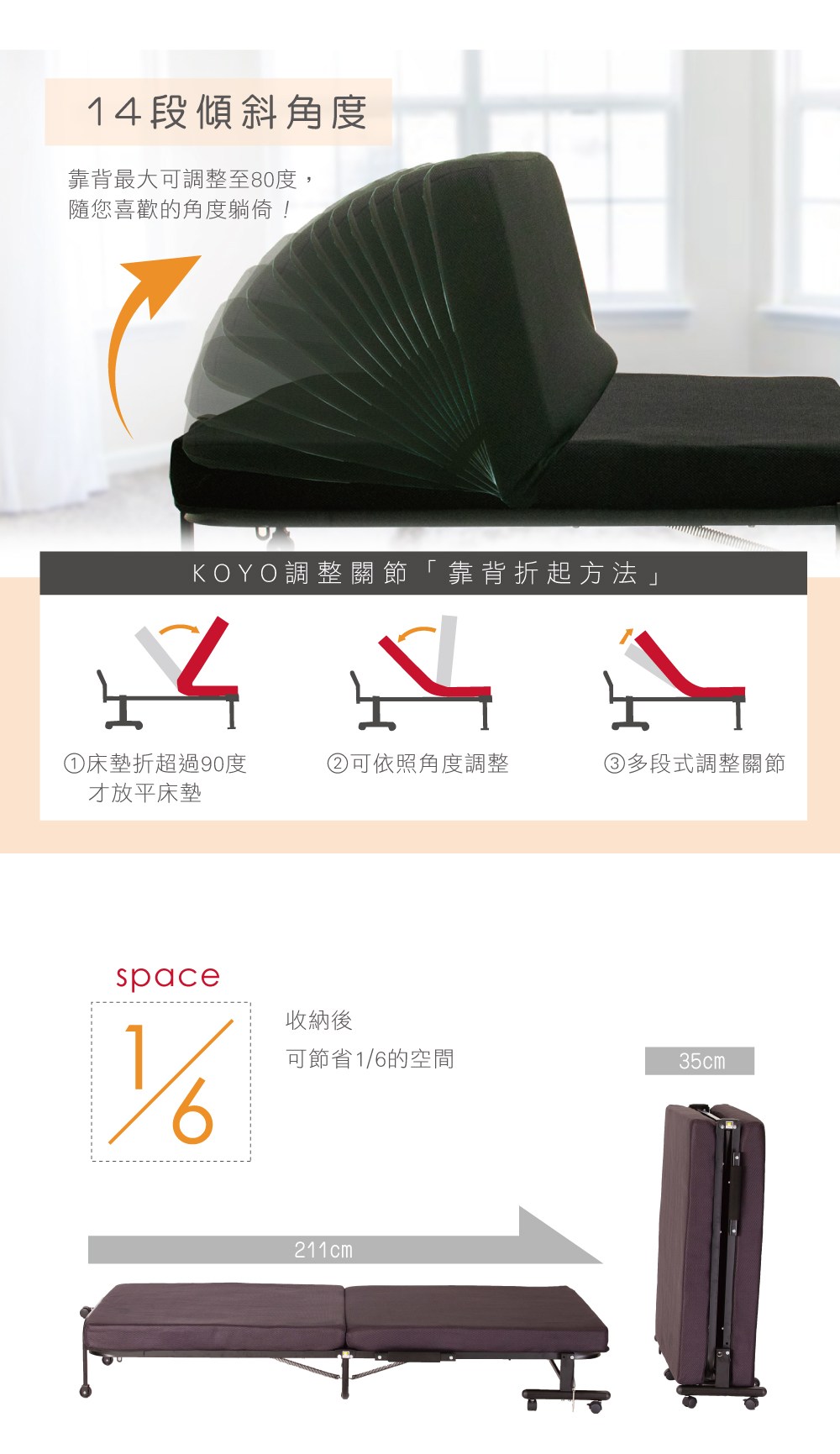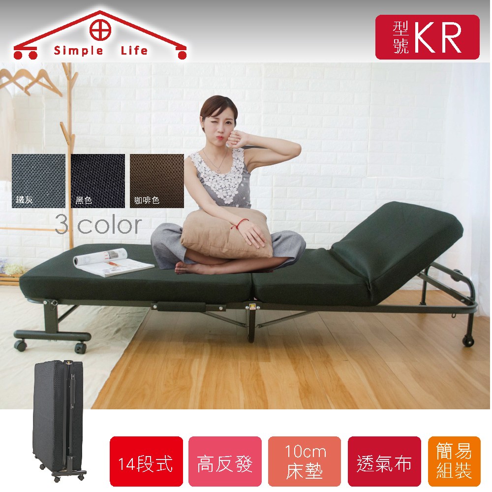 【Simple Life】 高反發支撐14段收納折疊床(簡易組)KR咖