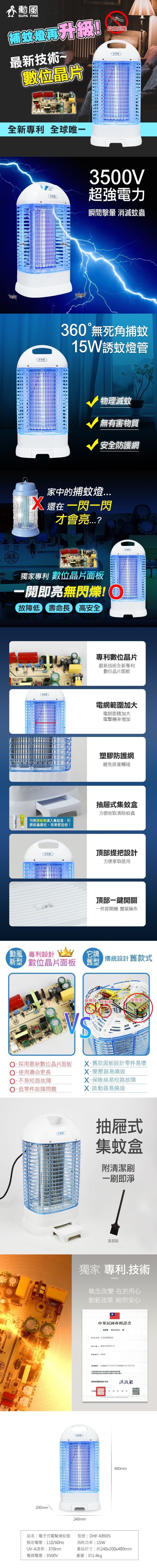勳風 15W電擊式電子捕蚊燈 DHF-K8905