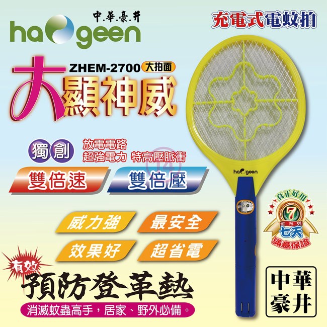 中華豪井大拍面大顯神威充電式電蚊拍 ZHEM-2700_廠商直送