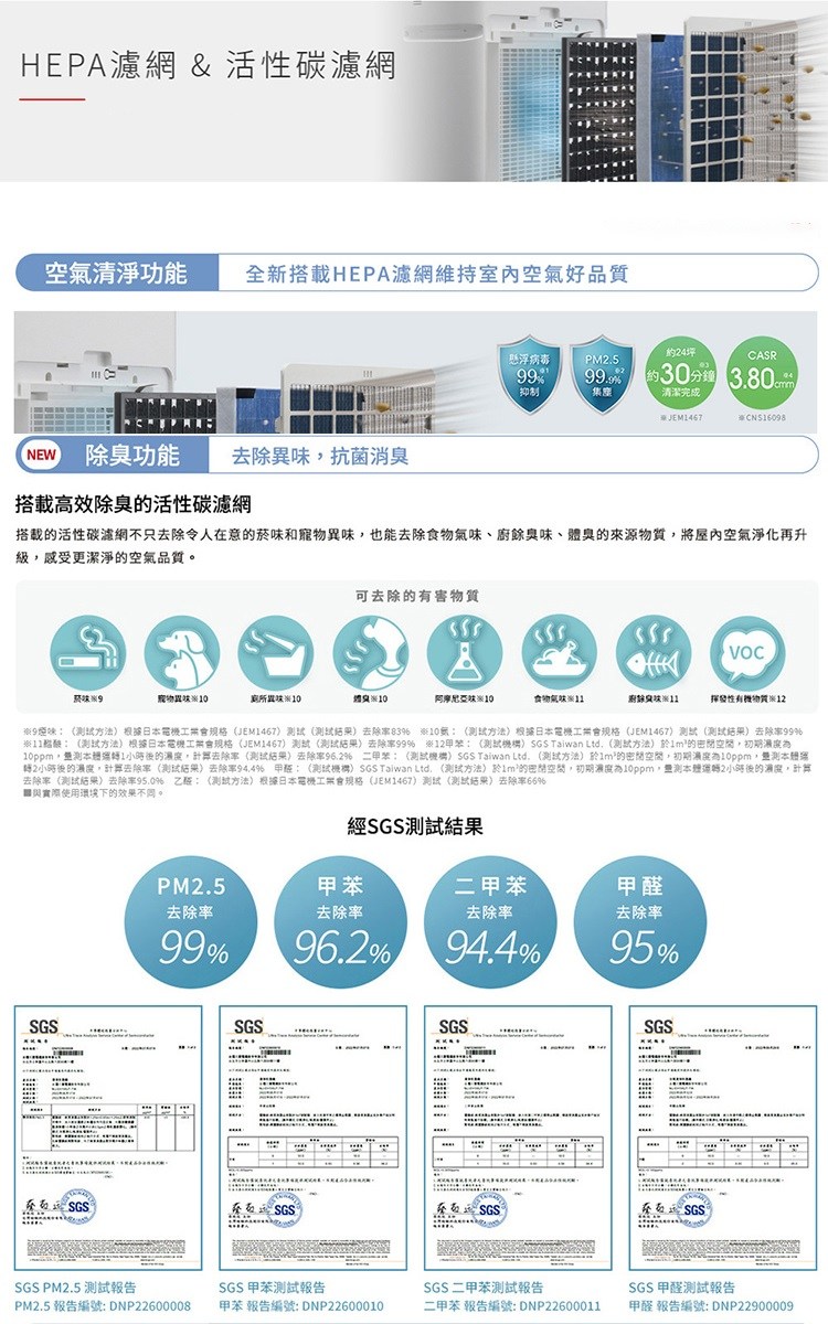 潔淨空氣提供率標示值(CASR,cmm):3.80