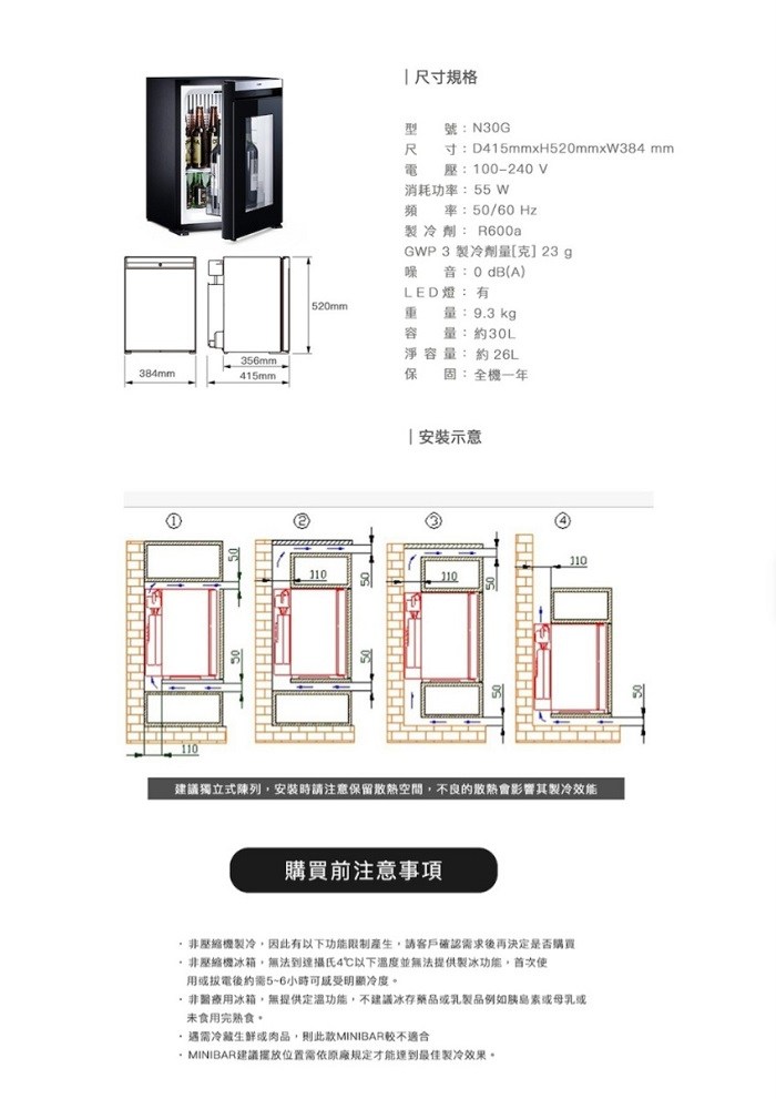 Dometic N30G 玻璃門 30公升 無聲小冰箱 Minibar / 贈儲物機 送完為止