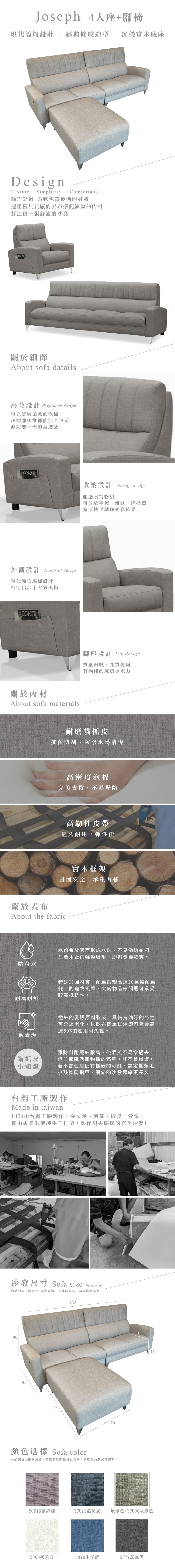 【本木】約瑟 現代簡約貓抓皮4人坐+腳椅燕灰藍#13