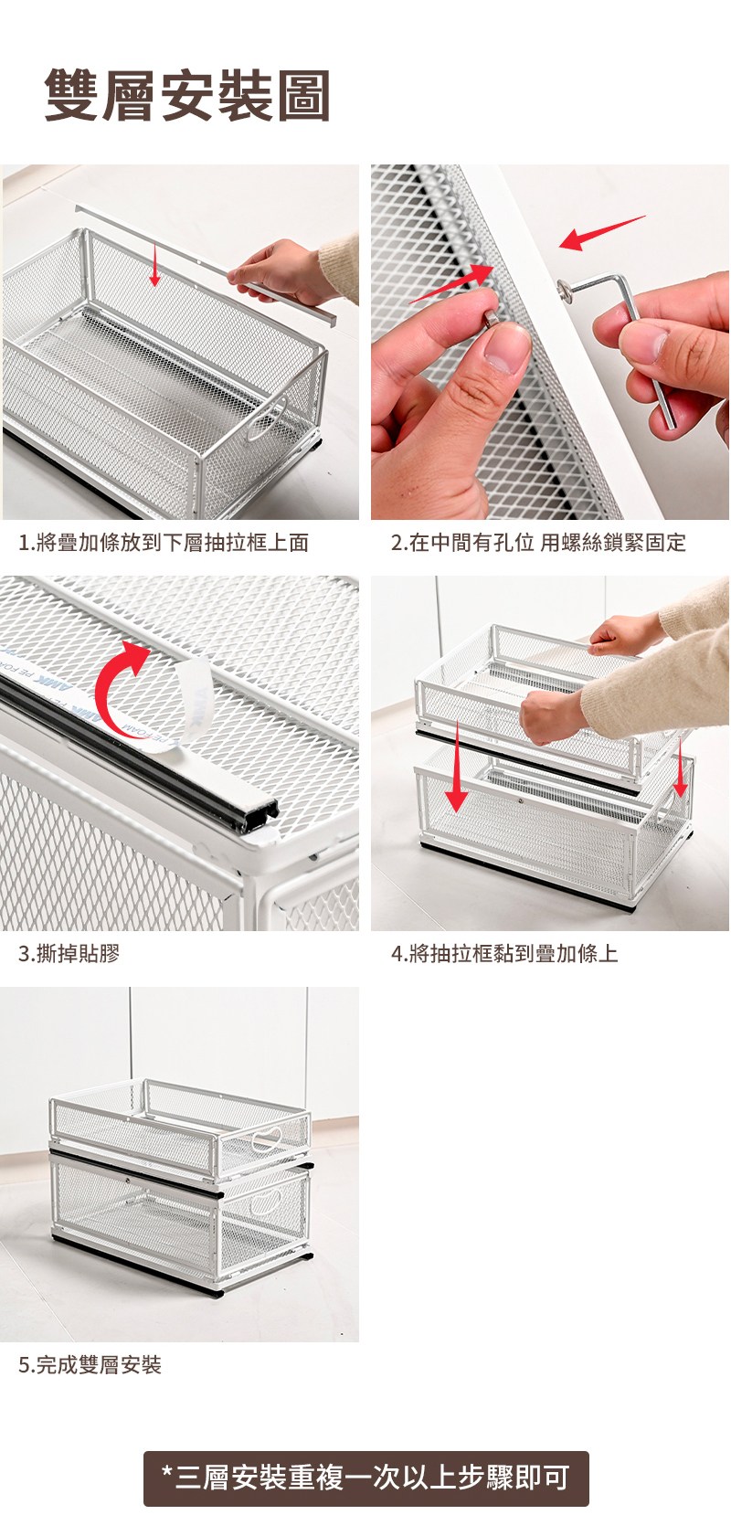 抽拉式可疊加置物架 金屬+三層高溫烤漆 圓弧把手 1個