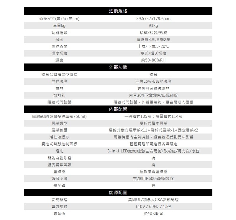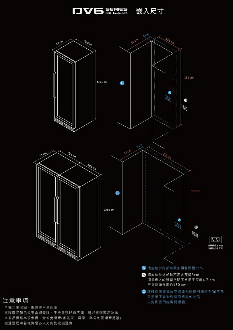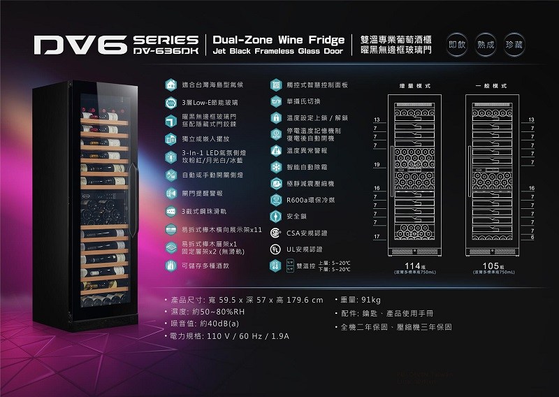 DIVIN 曜黑無邊框玻璃門雙溫葡萄酒櫃 DV-636DK (105-114瓶)