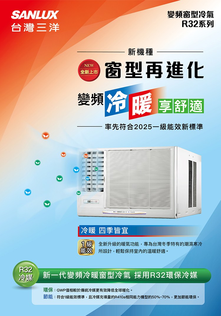 SANLUX台灣三洋8-10坪一級變頻冷暖右吹窗型冷氣 SA-R60VHR~含基本安裝+舊機回收