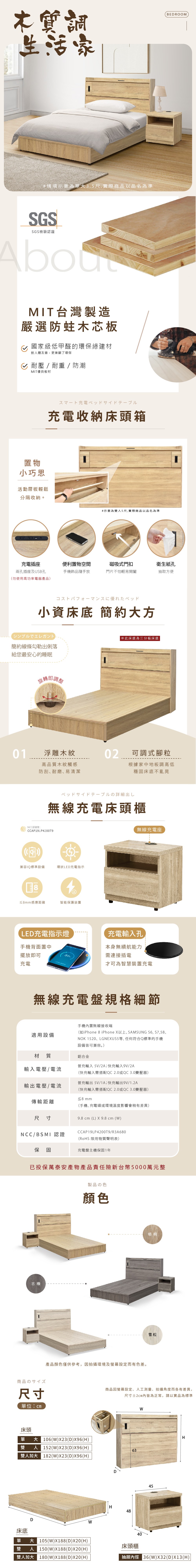 傢俱工場-吉米 MIT木心板床組 (插座床箱+床底) - 單大3.5尺梧桐