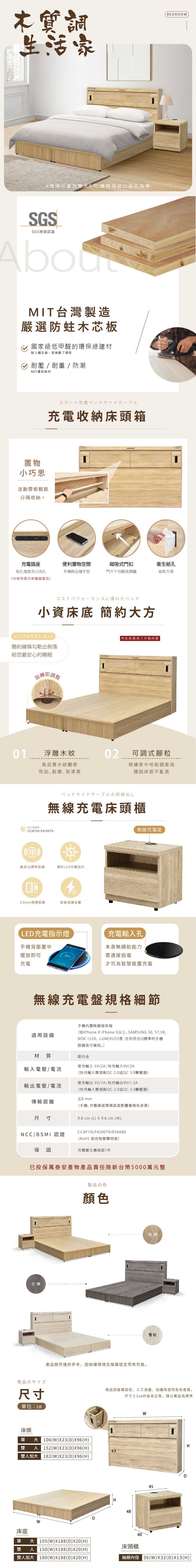 源氏木語西雅圖橡木原木色斜靠雙人5尺150x190夜燈低舖床架 Y90B28 (H014324397)