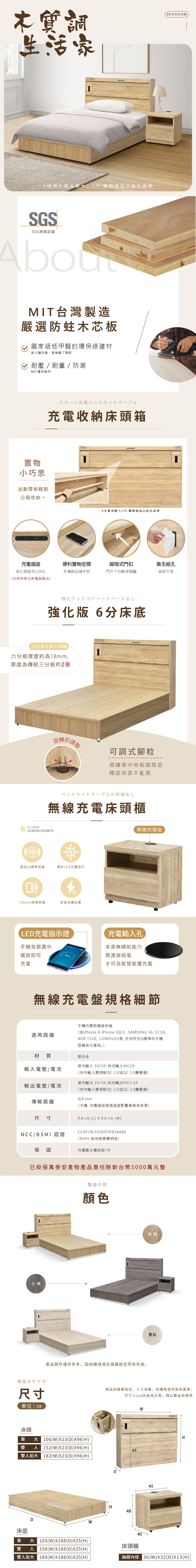 傢俱工場-吉米 MIT木心板床組 (插座床箱+床底) - 雙大6尺梧桐