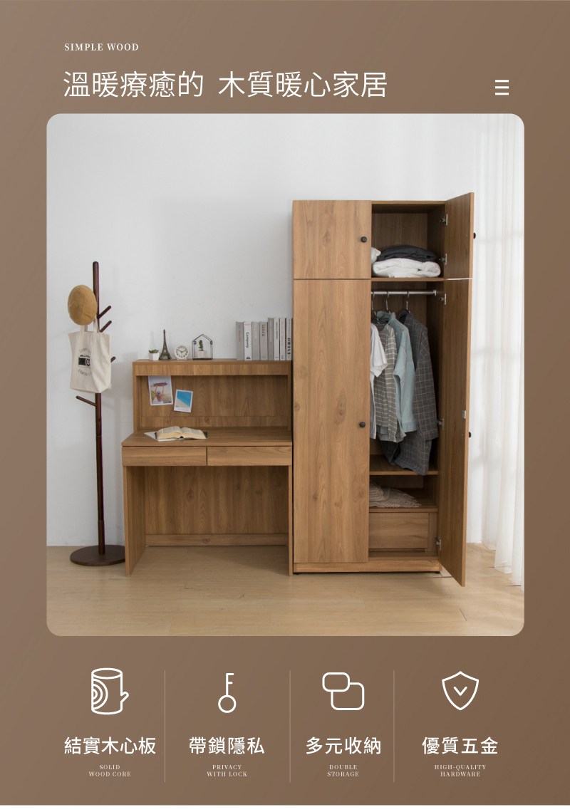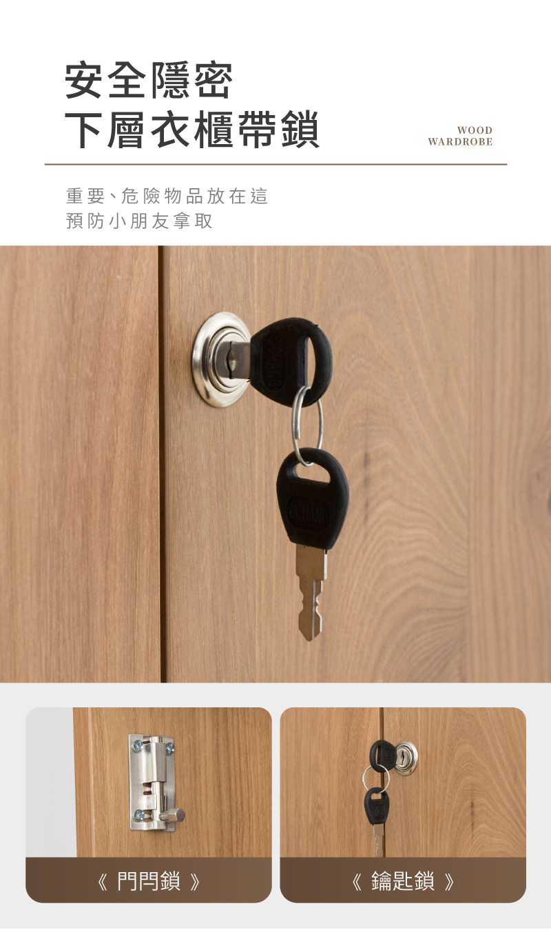【IDEA】木感質調拉門收納帶鎖衣櫃/衣櫥(收納櫃)