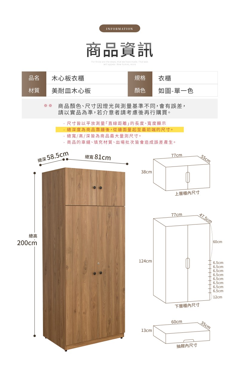 MUNA家居 228型2.7X6尺衣櫥/衣櫃(共三色) 81X59.5X178cm