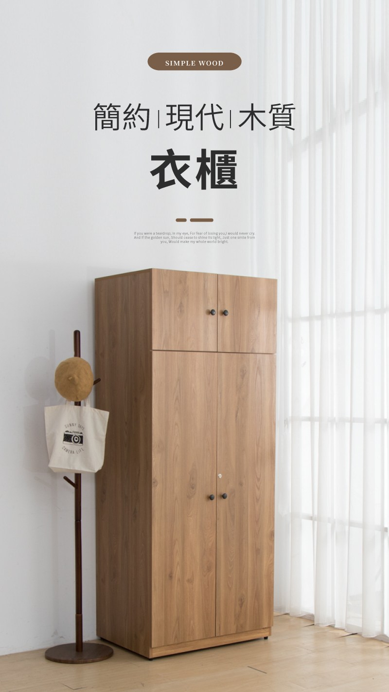 文創集 艾米2.7尺加高開&推門衣櫃組合-82x58x236cm免組
