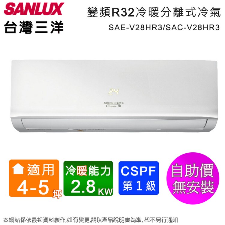 SANLUX台灣三洋4-5坪一級變頻冷暖分離式冷氣 SAE-V28HR3/SAC-V28HR3~含運無安裝