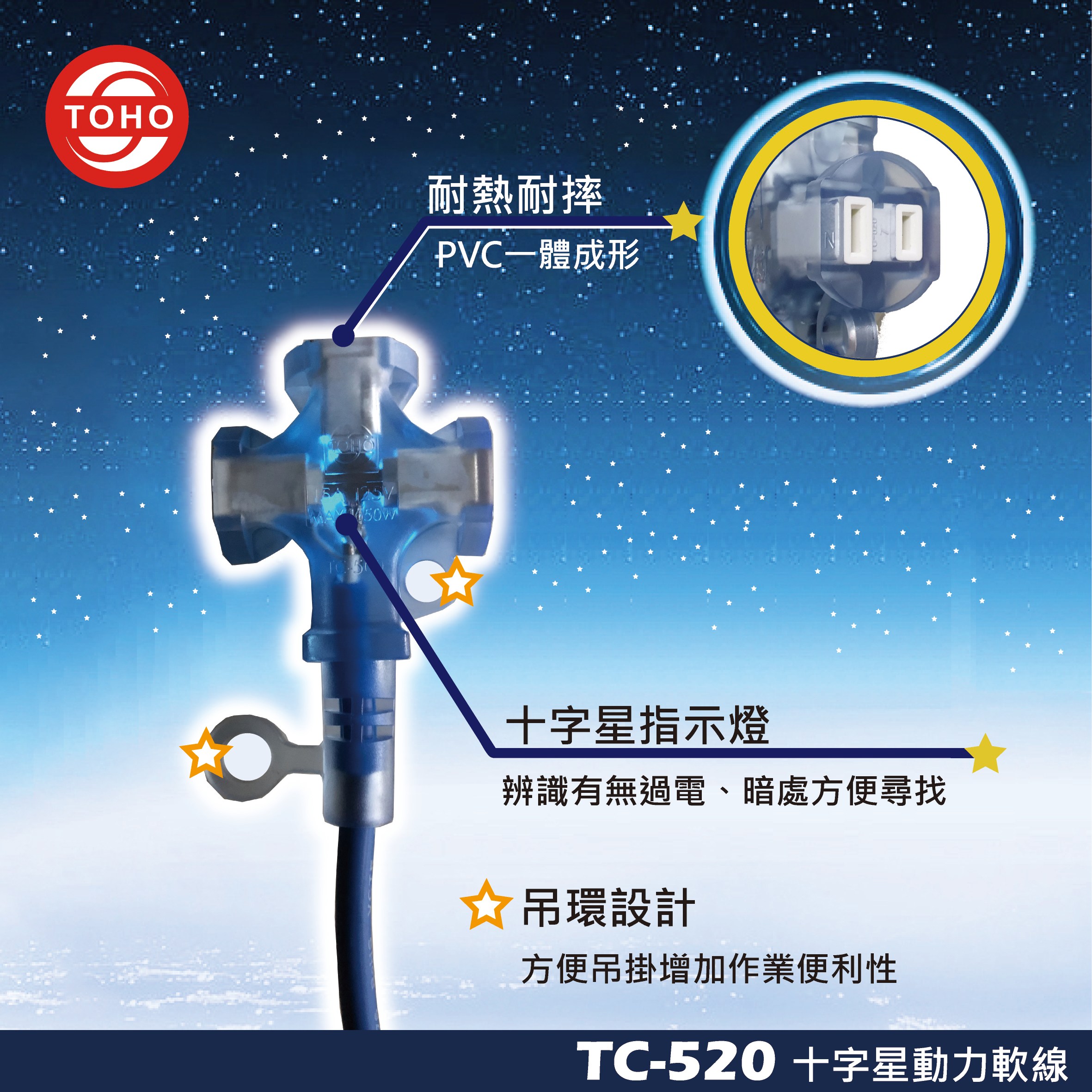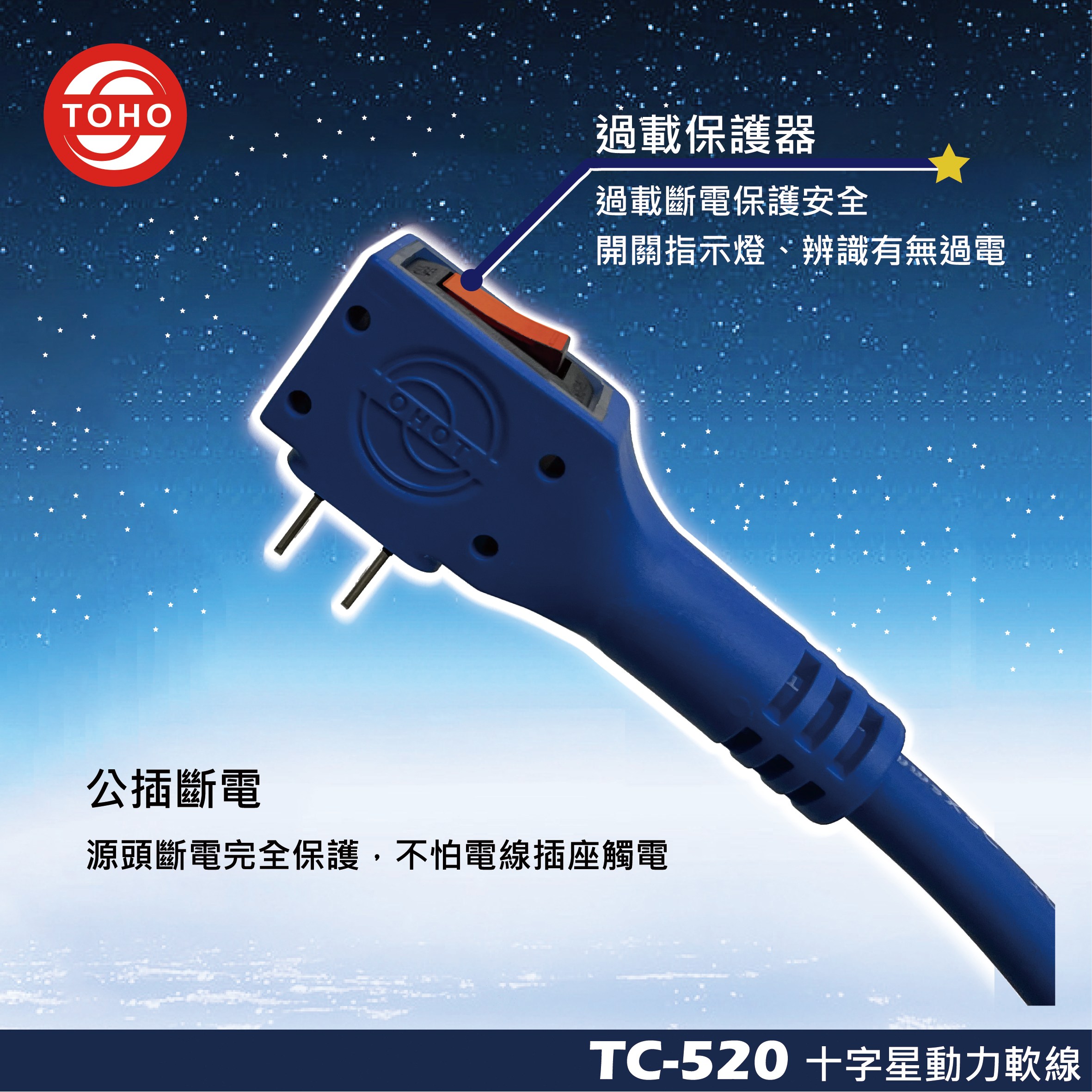 鎰勝 2孔 1轉3帶燈 2m 延長線 藍色 1條