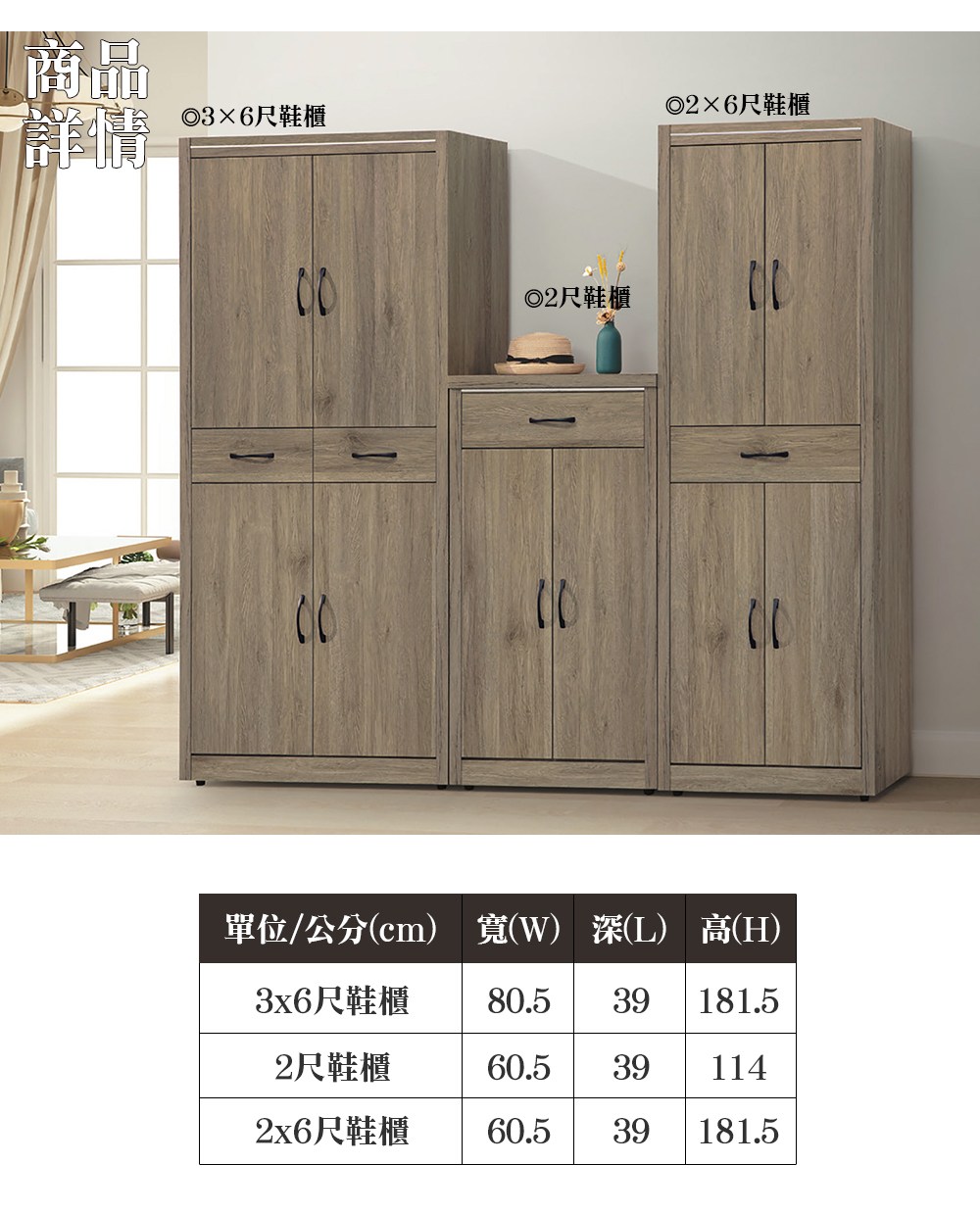 【顛覆設計】聖艾諾2x6尺灰橡色鞋櫃